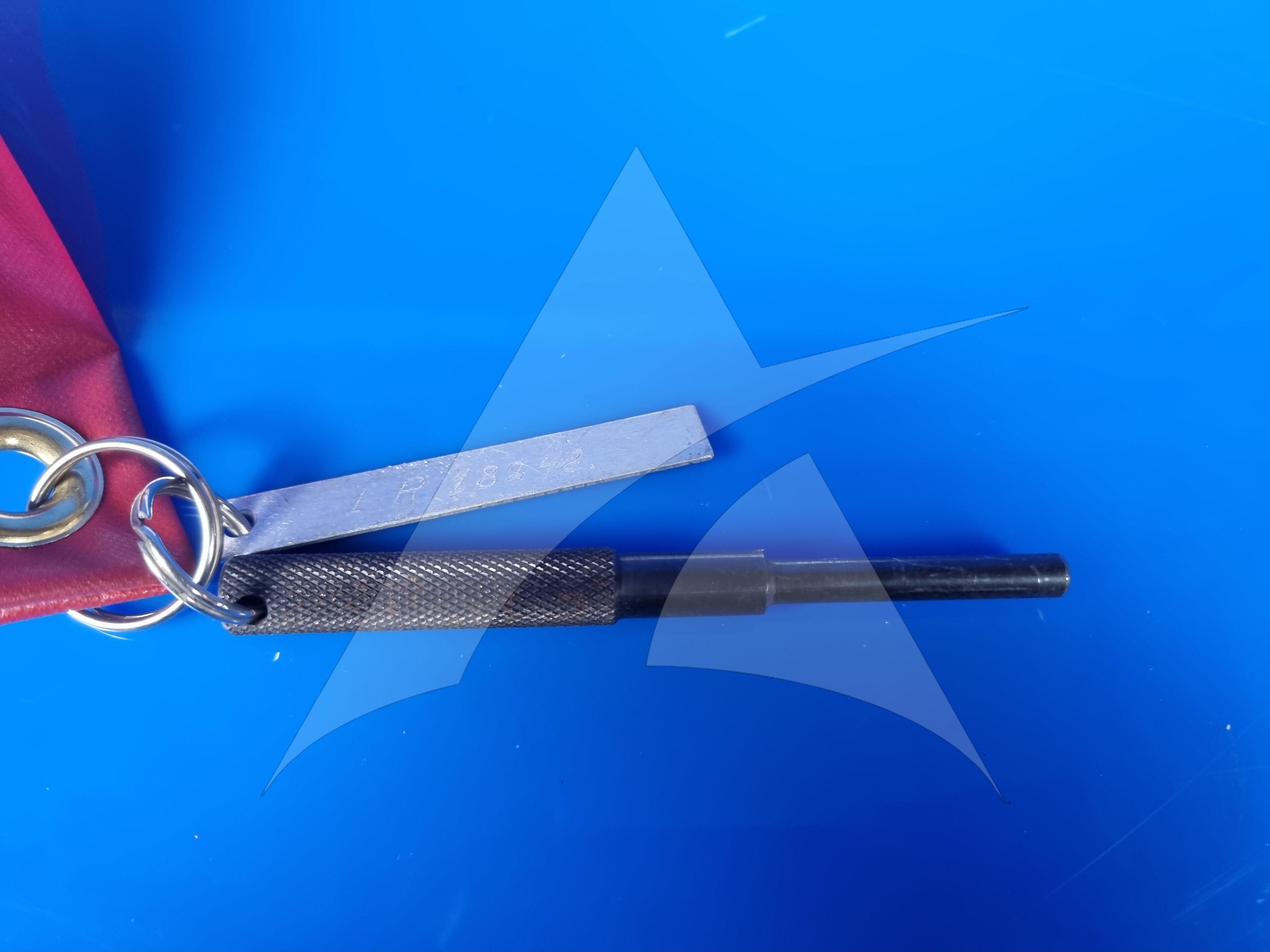 Tech Appraisal: RIGGING PIN IS IN VERY GOOD CONDITION. KNURLING AND BLACK ANODIZING FINISH SURFACE IN VERY GOOD CONDITION. PIN IS STRAIGHT AND TRUE WITH NO DAMAGE OR DEFORMATION. SAFETY FLAG IN NEW CODITION. UNIT OFFERED IN SV CONDITION.