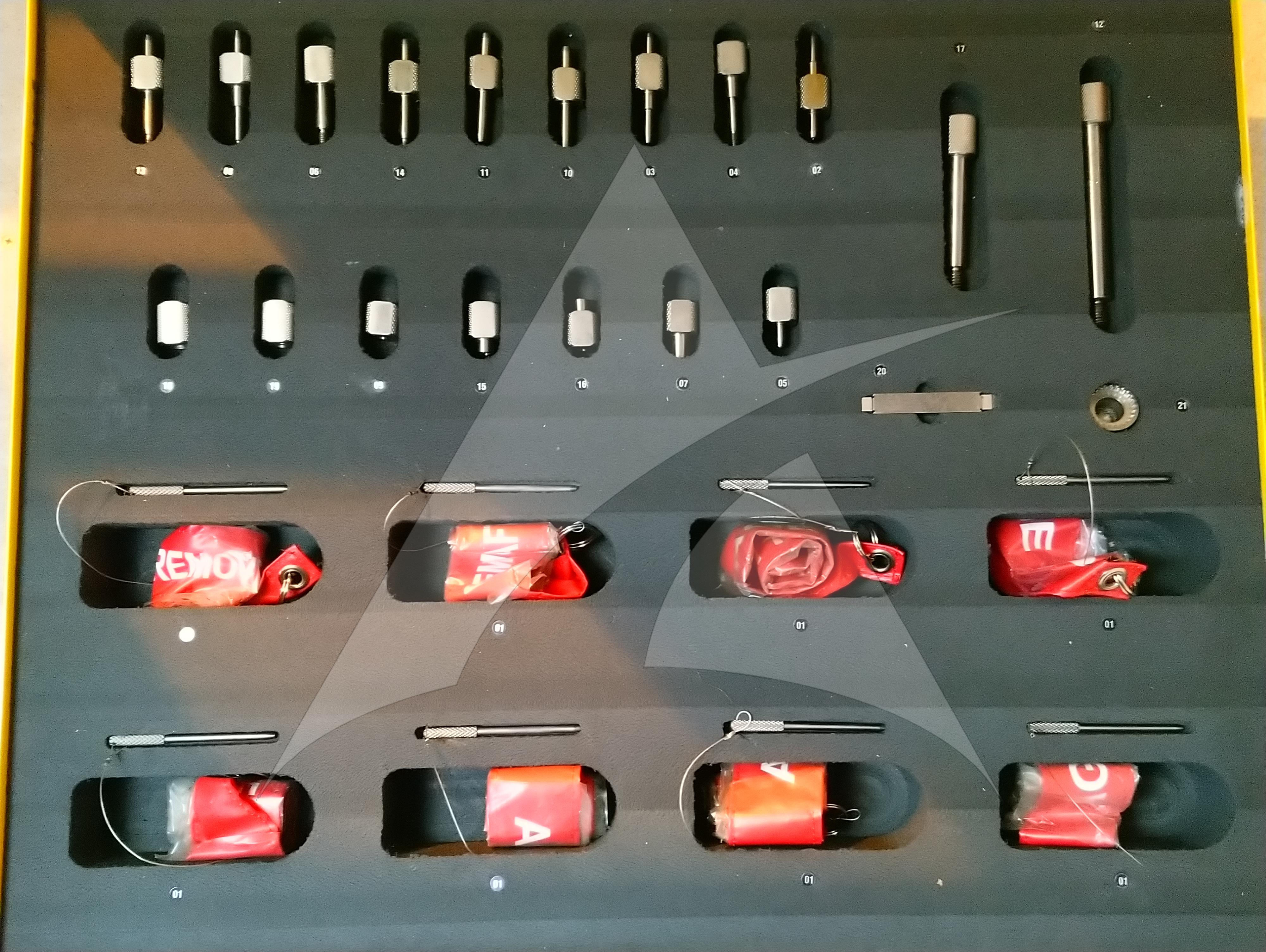 Tech Appraisal: AVIAPOOL OFFERS FOR SALE OR LOAN IN HIGH QUALITY RIGGING PIN SET. KIT CONFIRMED AS FULL COMPLEMENT WITH APPROVED MAINTENANCE DATA. ALL PINS AND SAFETY FLAGS IN EXCELLENT CONDITION WITH VERY LIGHT PREVIOUS PREVIOUS USE. ALL PINS INSPECTED AS STRAIGHT AND TRUE. ALL MAIN PINS WITH KNURLED GRIP WITH NO SIGNS OF DAMAGE OR DEFORMATION. WELL-MADE CASTELLATED SOCKET DOESN'T HAVE SCRATCHES. ALL MAIN NUTS WITH KNURLED GRIP IN EXCELLENT CONDITION. ALL COMPONENTS AND THREADED CRESTS INSPECTED AND SATIS. KIT OFFERED IN SERVICEABLE AND GOOD WORKING ORDER CONDITION WITH TRANSPORT STORAGE BOX. HIGH-PERFORMANCE FOAM CUT OUT.